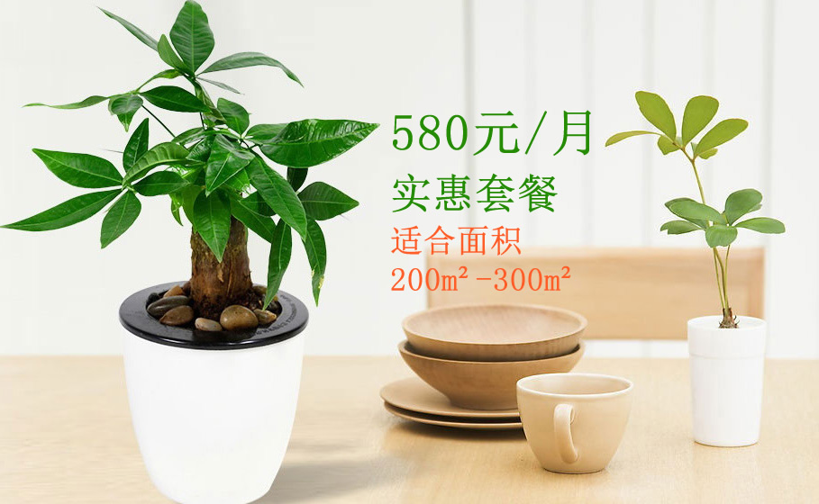 大植物(品种可更换):单杆发财树2盆、天堂鸟1盆、大绿萝2盆,步步高发财树1盆。